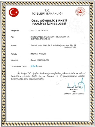 Özel Güvenlik Şirketi Faaliyet İzin Belgesi